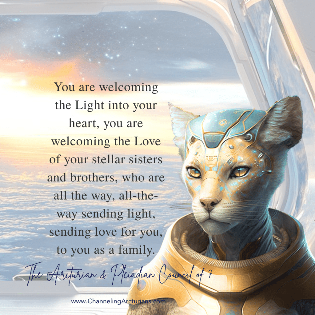 We are Arcturian, Pleiadian Council of 7 with you, beloved, beloved human family. We are Ancestors, we are future selves, and we are yourselves in this present now. We are watching, and we are helping so many of you, beloved human family, to combine your experiences in the coherent state of being. When you feel the change, when you feel yourself in the brightest light, feel the presence of your Guides, feel the presence of your Higher Self, the highest, highest, highest light, feel the love which is coming from your heart to all beings, and surround yourself in the Golden, White Light, because it is you, the brightest light, the brightest love which we are sharing all together in every moment of your life, in every moment of your light life on Earth.